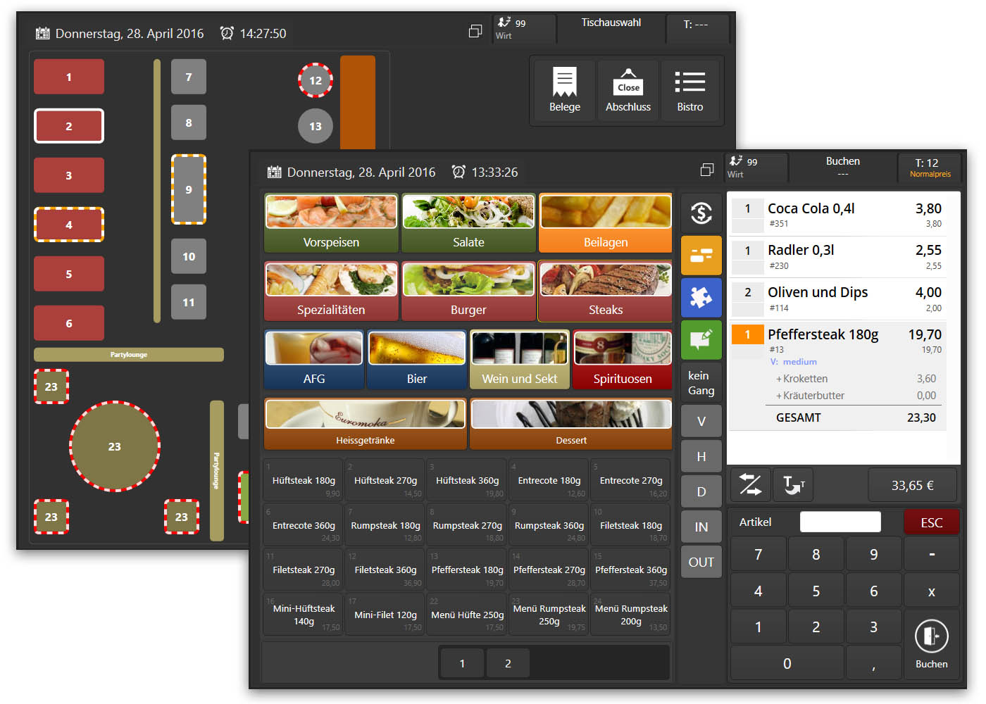 Um blitzschnell die Bestellungen Ihrer Gäste zu erfassen, verfügt KORELIA über einen speziellen Bedienmodus, der ursprünglich für die Systemgastronomie entwickelt wurde.